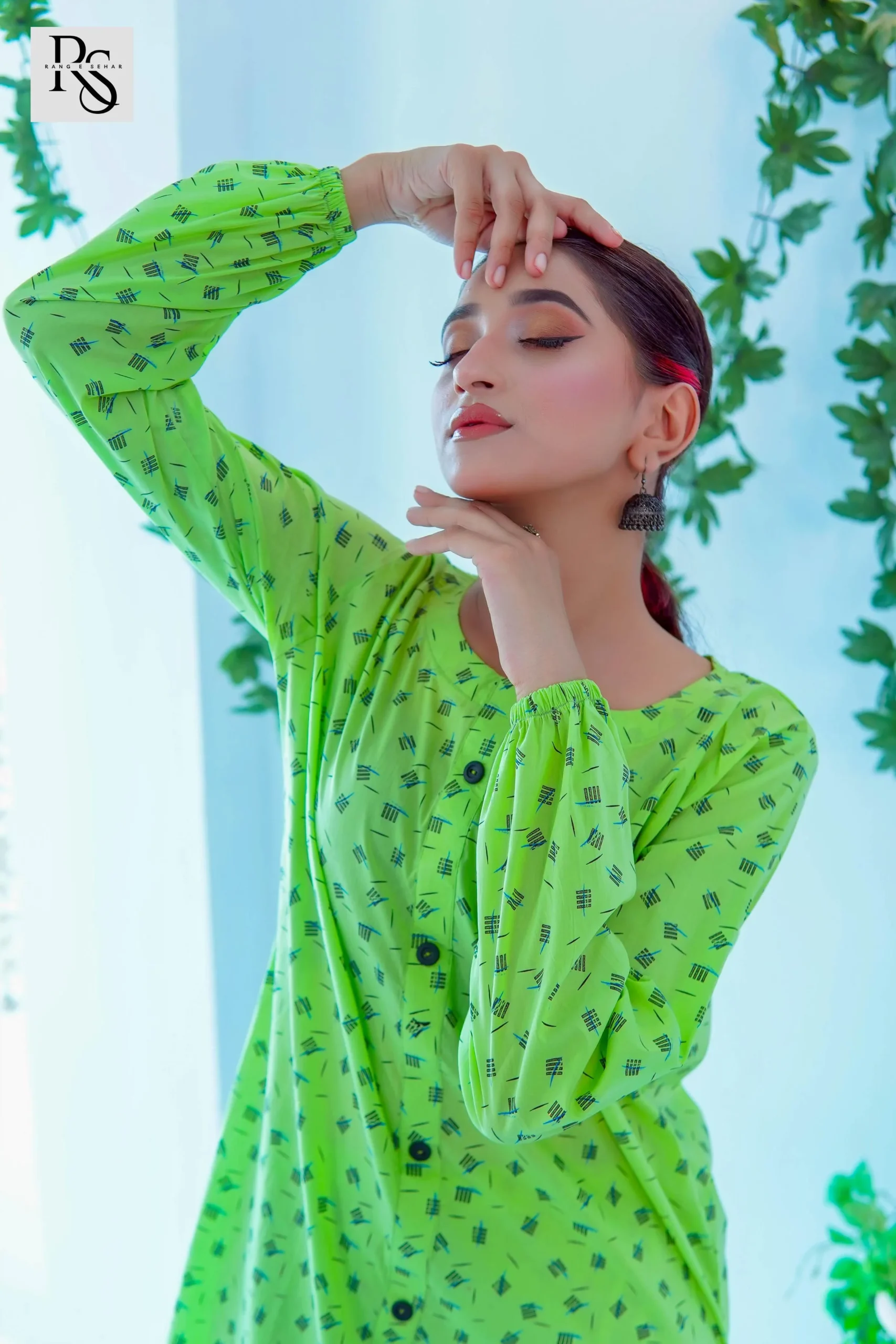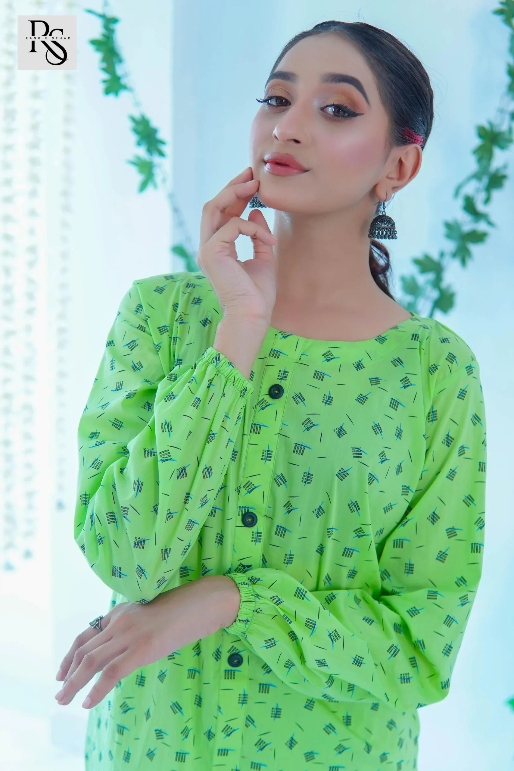 • Lime Green Co-ord Set with Tiny Dark Green Flower