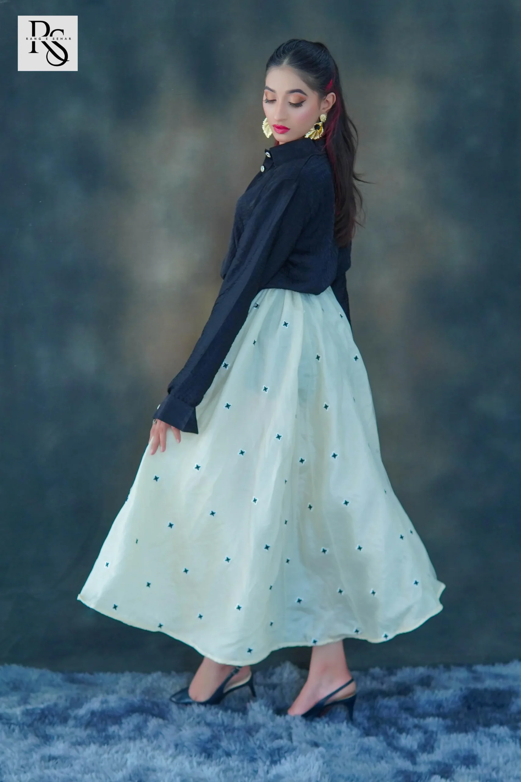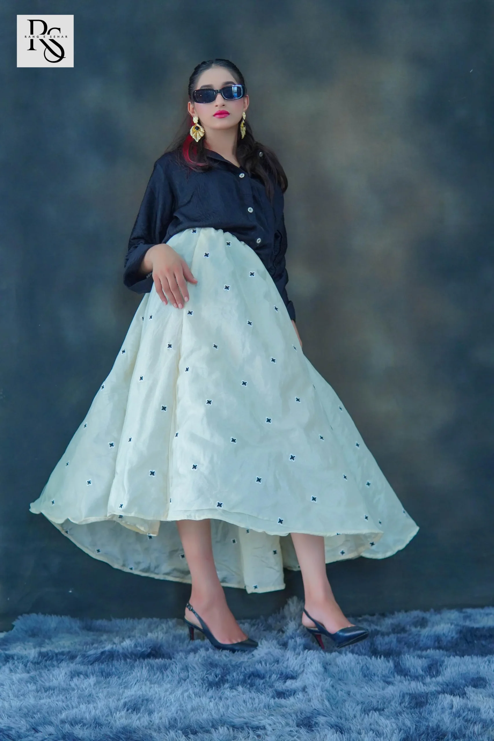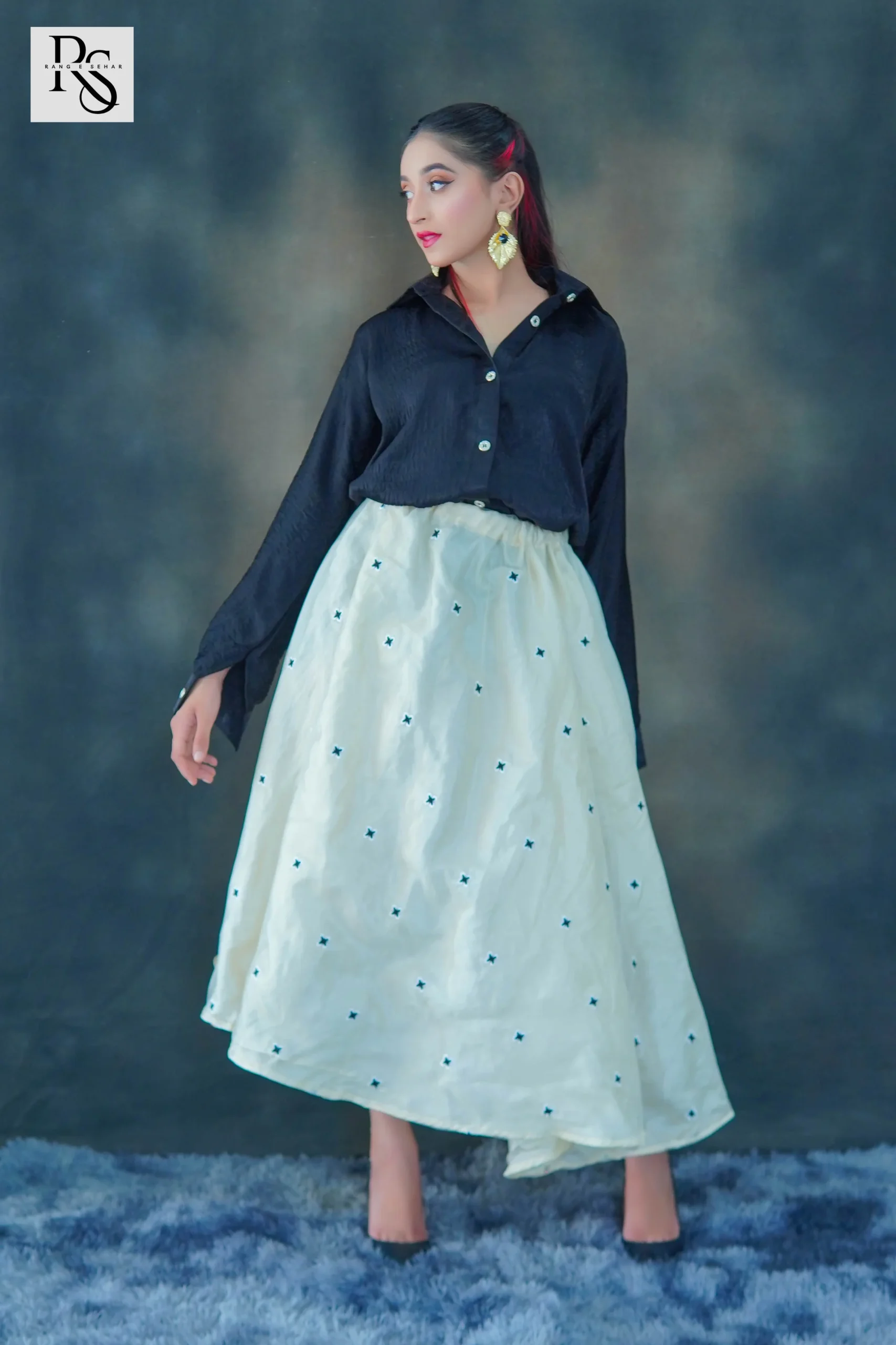 • Light Beige/ Cream Silk Satin embroidered Skirt